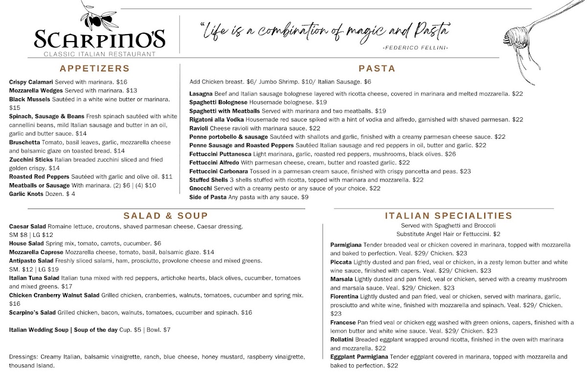 If you’re craving the kind of Italian food that feels like it came straight from a family kitchen, Scarpino's Classic Italian Menu is where the magic starts. Tucked away at 6152 14th St W in Bradenton, this spot lays out all the comforting favorites you’d hope for - and then some. From saucy pasta dishes layered with rich marinara to creamy Alfredo that clings perfectly to every bite, the menu reads like a love letter to traditional Italian cooking.