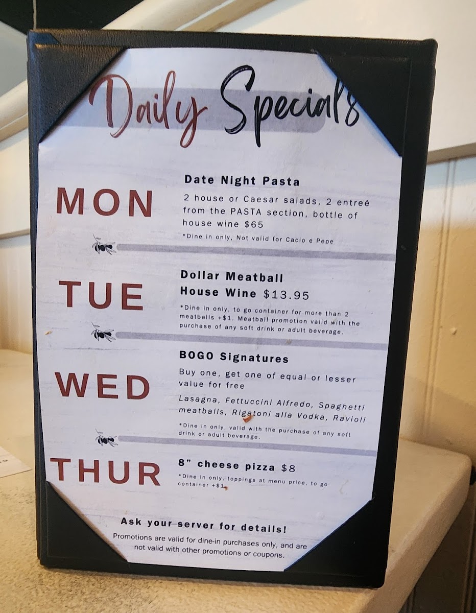 You’ll spot golden, bubbling pizzas fresh from the oven, hearty lasagna stacked high, and seafood plates that bring a little coastal flair to the table. And then there are the starters - crispy calamari, warm garlic knots, and fresh salads that don’t feel like an afterthought. Everything feels thoughtfully put together, the kind of food you lean in for and slow down to enjoy. It’s the sort of menu that makes choosing difficult - but in the best possible way.